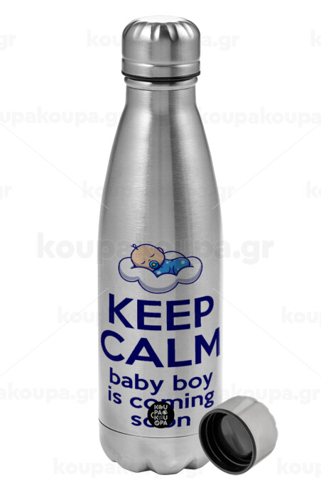KEEP CALM baby boy is coming soon!!!, Metallic water bottle, stainless steel, 750ml