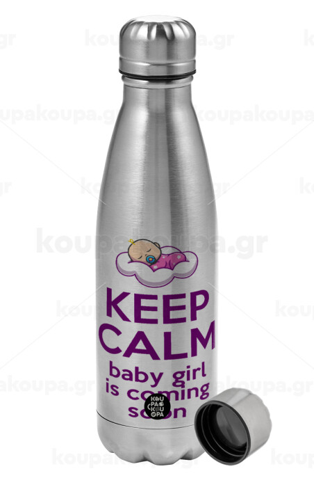 KEEP CALM baby girl is coming soon!!!, Metallic water bottle, stainless steel, 750ml