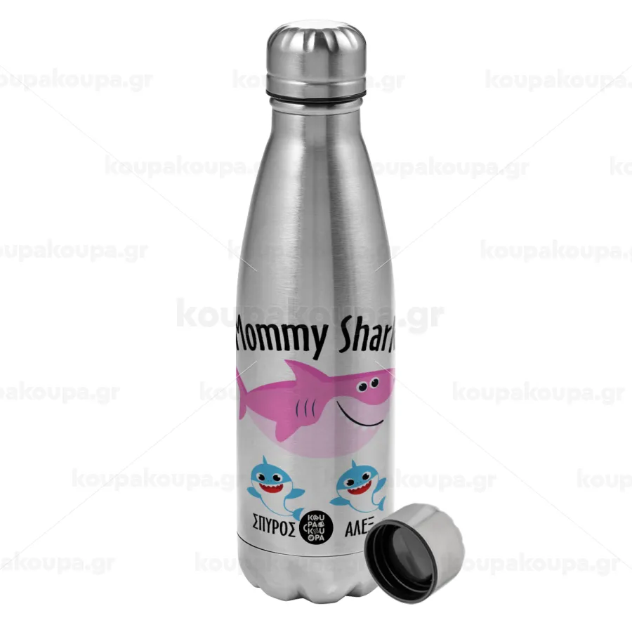 Mommy Shark (με ονόματα παιδικά), Metallic water bottle, stainless steel, 750ml