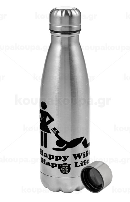 Happy Wife, Happy Life, Metallic water bottle, stainless steel, 750ml