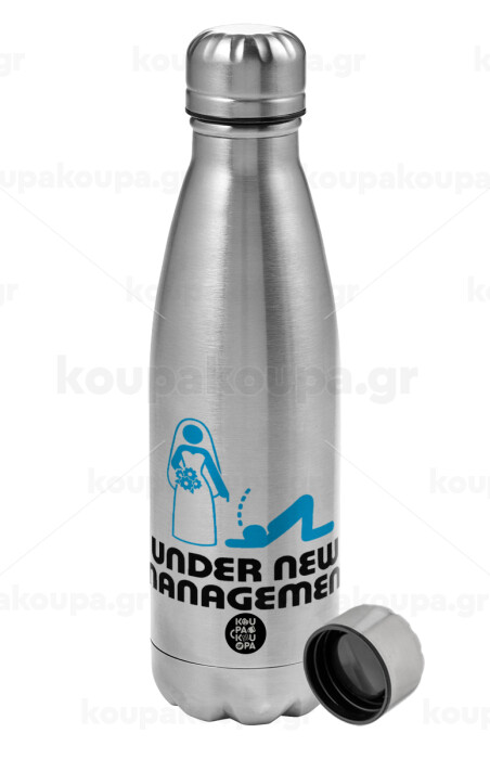 Under new Management, Metallic water bottle, stainless steel, 750ml