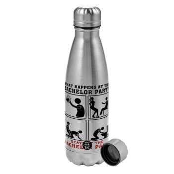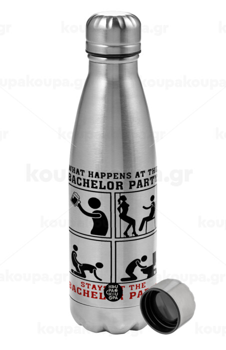 What happens at the bachelor party, stays at the bachelor party!, Metallic water bottle, stainless steel, 750ml