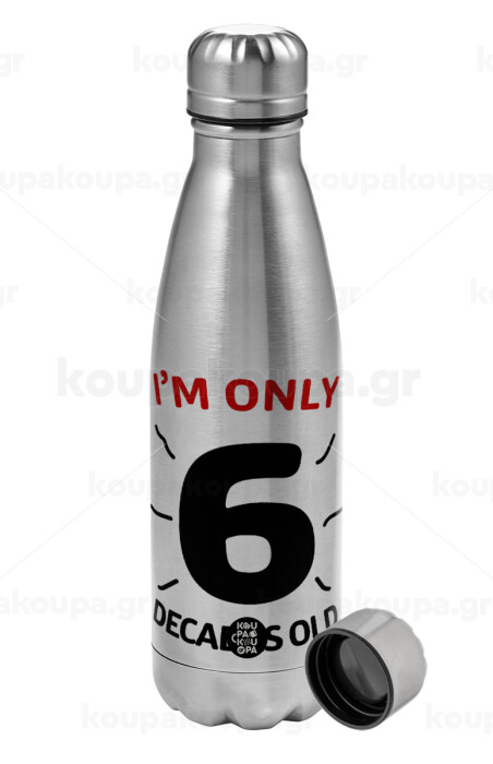 I'm only NUMBER decades OLD, Metallic water bottle, stainless steel, 750ml