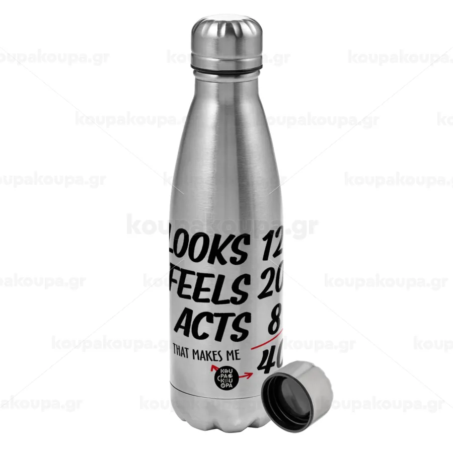 Looks, feels, acts LIKE your AGE, Metallic water bottle, stainless steel, 750ml