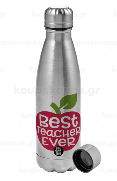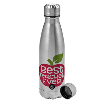 best teacher ever, apple!, Metallic water bottle, stainless steel, 750ml