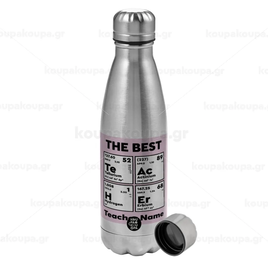 THE BEST Teacher chemical symbols, Metallic water bottle, stainless steel, 750ml