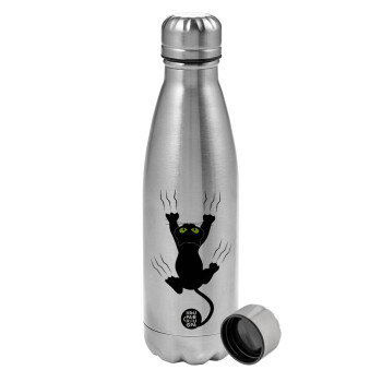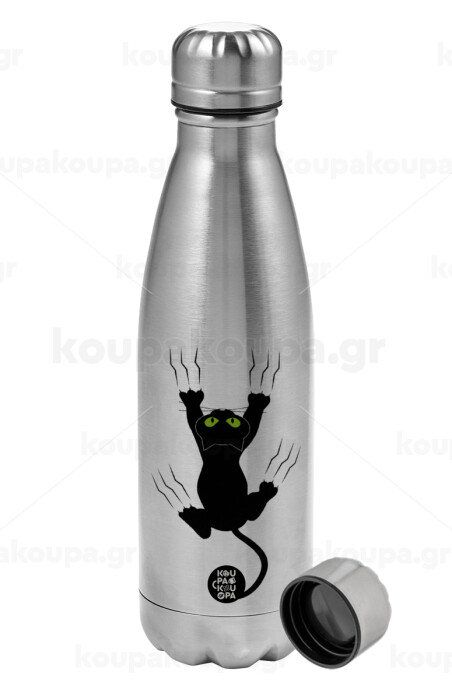 cat grabbing, Metallic water bottle, stainless steel, 750ml