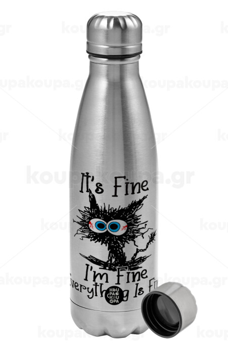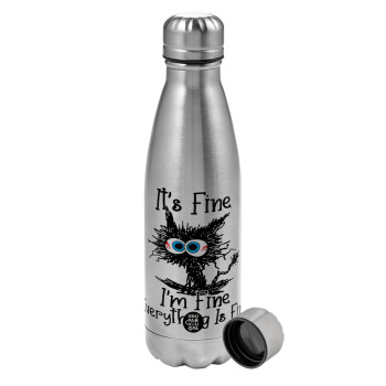 Cat, It's Fine I'm Fine Everything Is Fine, Metallic water bottle, stainless steel, 750ml
