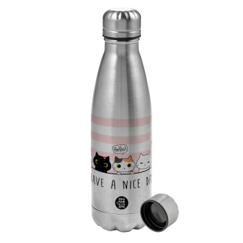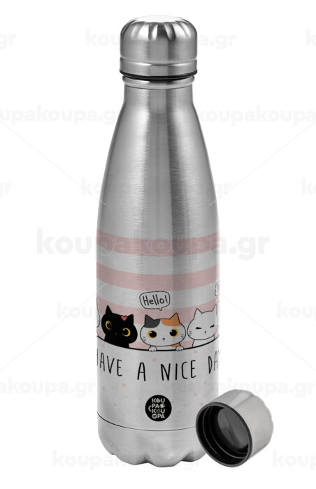 Have a nice day cats, Metallic water bottle, stainless steel, 750ml