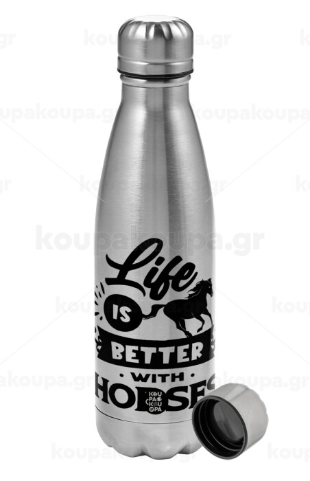 Life is Better with a Horses, Metallic water bottle, stainless steel, 750ml