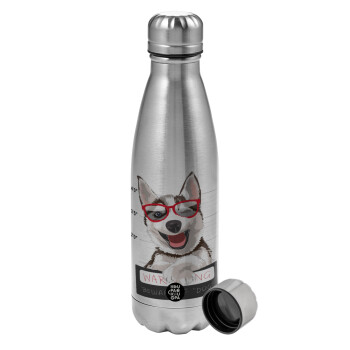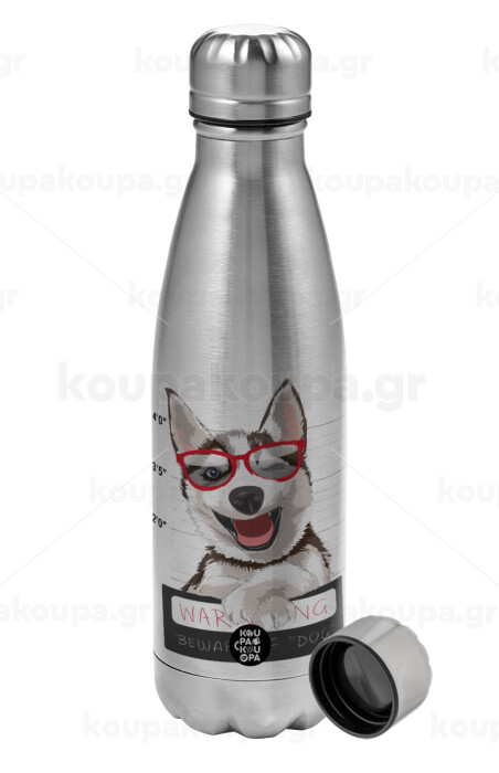 Warning, beware of Dog, Metallic water bottle, stainless steel, 750ml