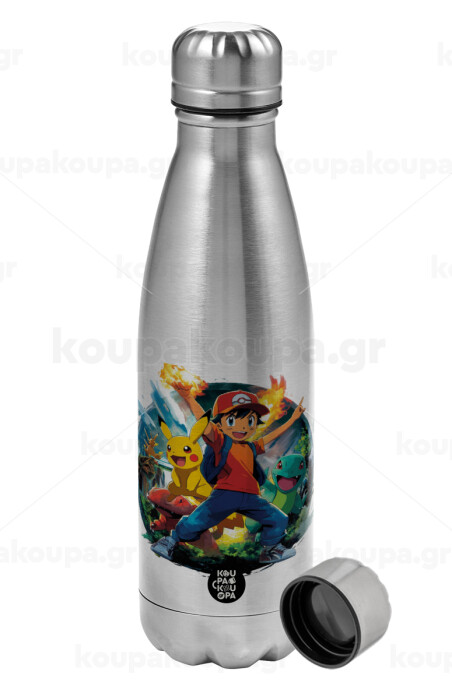 Ash Ketchum & Pikachu, Metallic water bottle, stainless steel, 750ml
