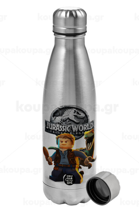 Jurassic world, Metallic water bottle, stainless steel, 750ml