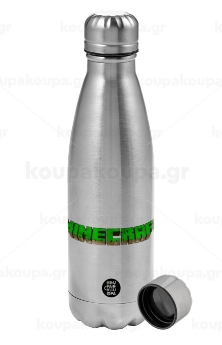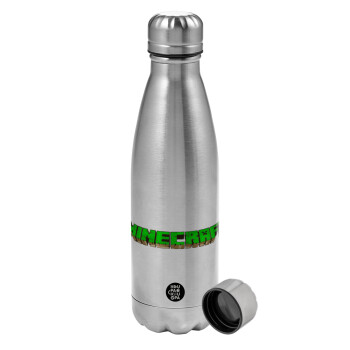Minecraft logo green, Metallic water bottle, stainless steel, 750ml
