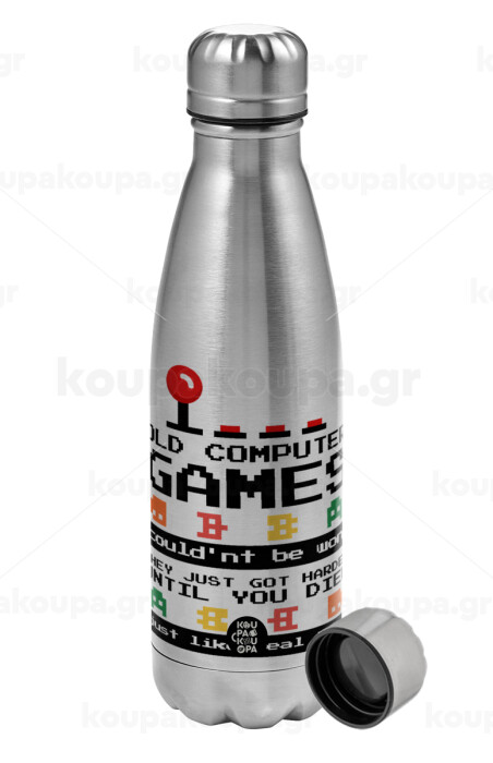 OLD computer games couldn't be won just like real life!, Metallic water bottle, stainless steel, 750ml