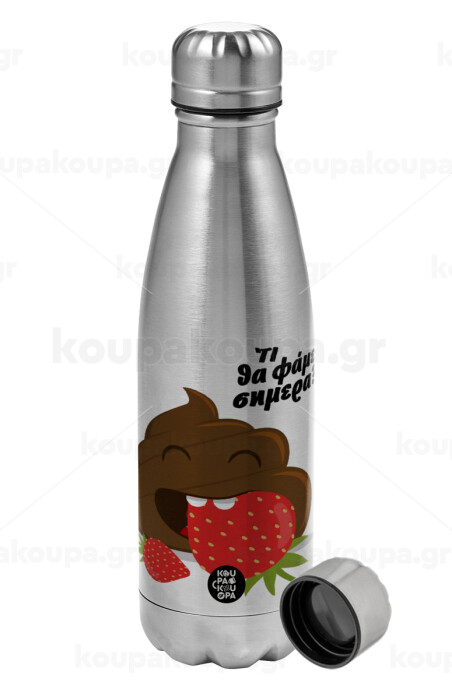 Τι θα φάμε σημερα???, Metallic water bottle, stainless steel, 750ml