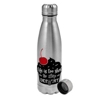 Life is too short, to skip Dessert, Metallic water bottle, stainless steel, 750ml