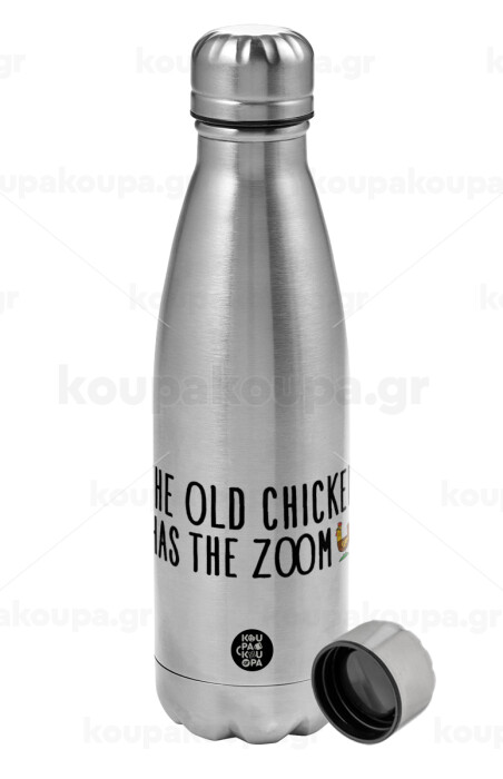 The old chicken has the zoom, Metallic water bottle, stainless steel, 750ml