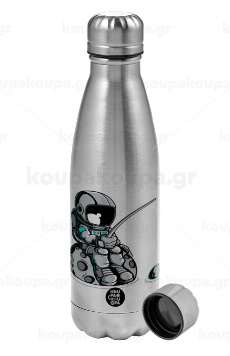 Little astronaut fishing, Metallic water bottle, stainless steel, 750ml