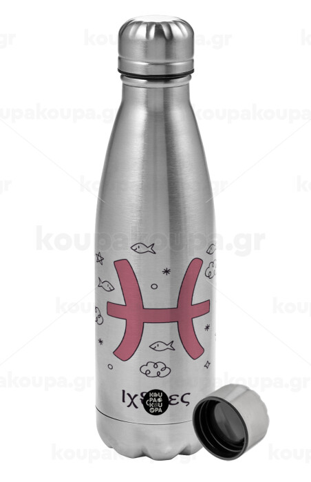 Ζώδια Ιχθύες, Metallic water bottle, stainless steel, 750ml