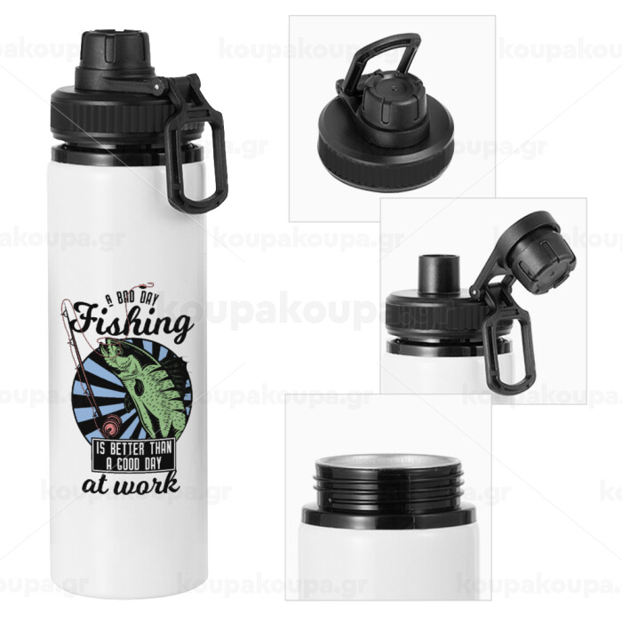 A bad day FISHING is better than a good day at work, Metal water bottle with safety cap, aluminum 850ml