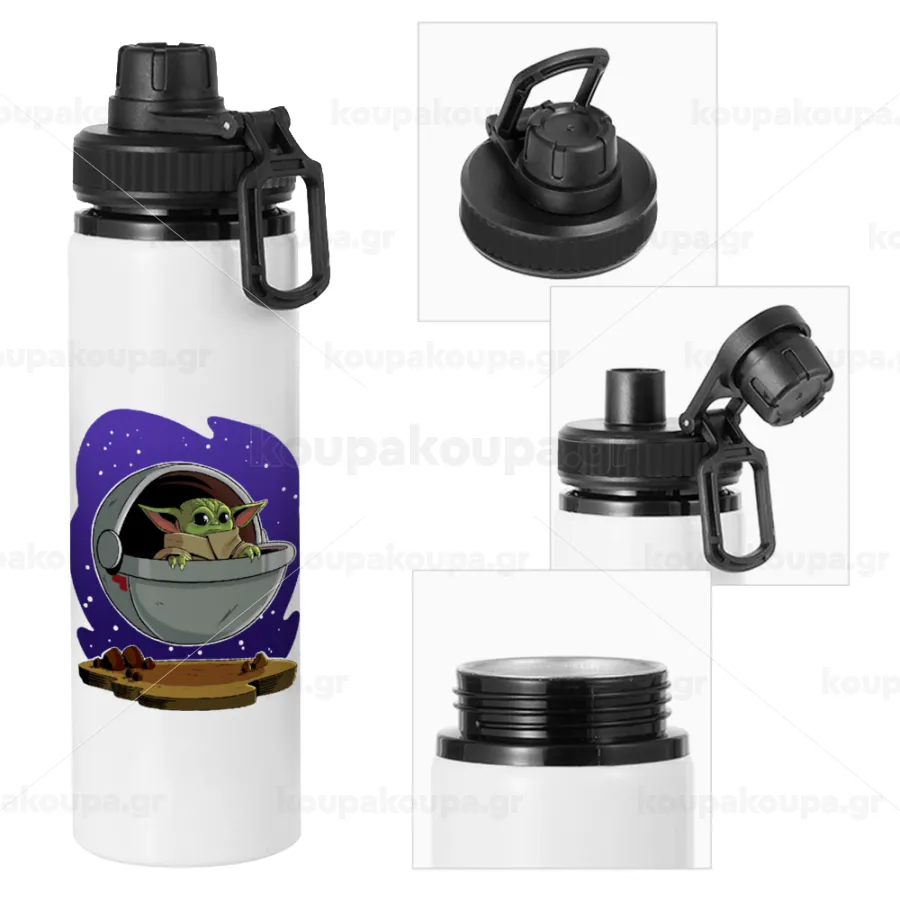 Baby Yoda mandalorian, Metal water bottle with safety cap, aluminum 850ml
