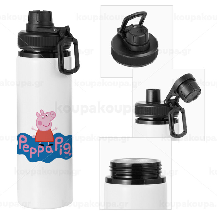 Πέππα το γουρουνάκι μπλε με όνομα, Metal water bottle with safety cap, aluminum 850ml
