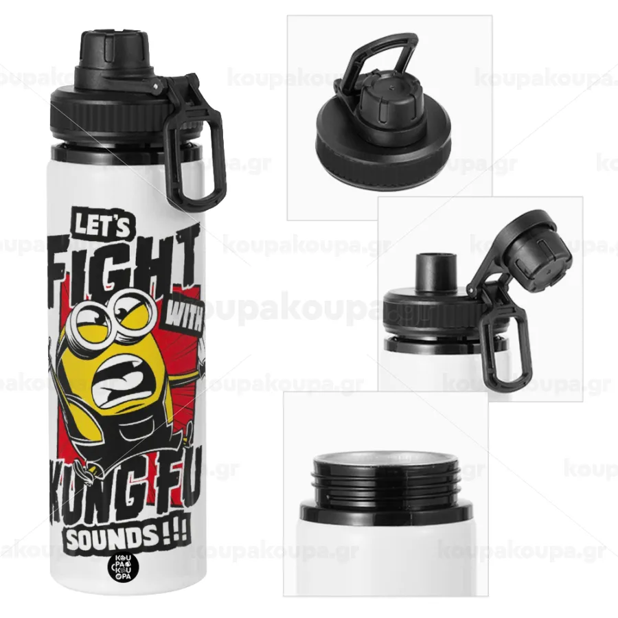 Minions Let's fight with kung fu sounds, Metal water bottle with safety cap, aluminum 850ml