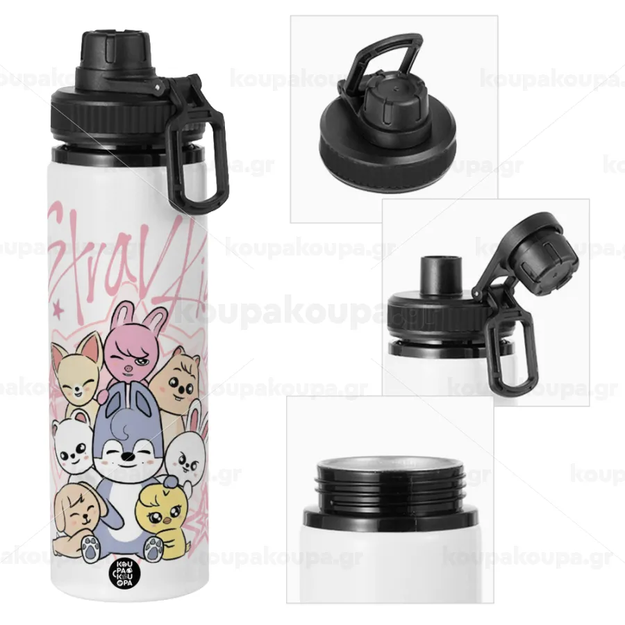 Stray Kids Pink, Metal water bottle with safety cap, aluminum 850ml