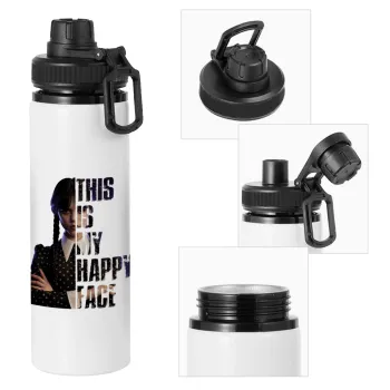 Wednesday, This is my happy face, Metal water bottle with safety cap, aluminum 850ml
