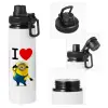 I love by minion, Metal water bottle with safety cap, aluminum 850ml