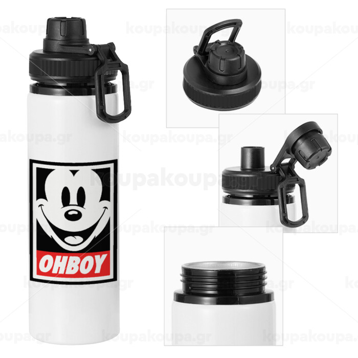 Oh boy μίκυ, Metal water bottle with safety cap, aluminum 850ml