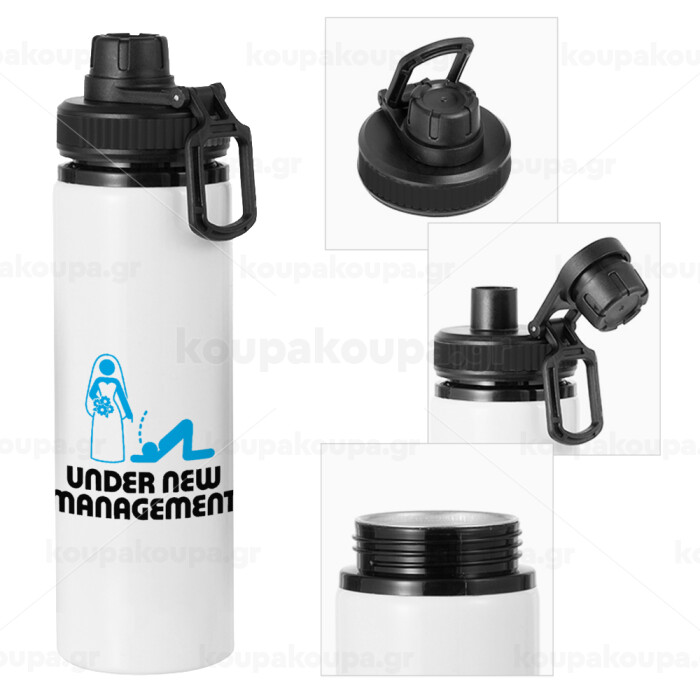 Under new Management, Metal water bottle with safety cap, aluminum 850ml