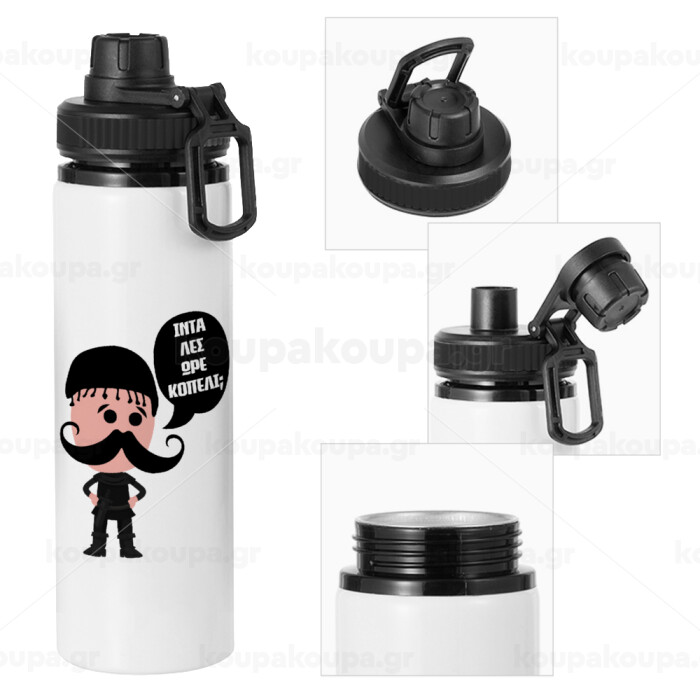 Κρητικός "Ίντα λες ωρέ κοπέλι", Metal water bottle with safety cap, aluminum 850ml