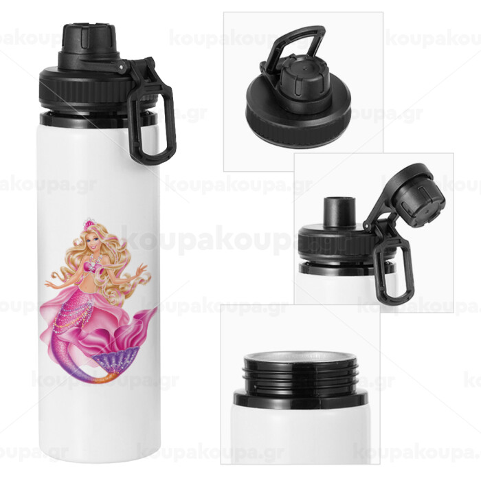 Barbie mermaid , Metal water bottle with safety cap, aluminum 850ml