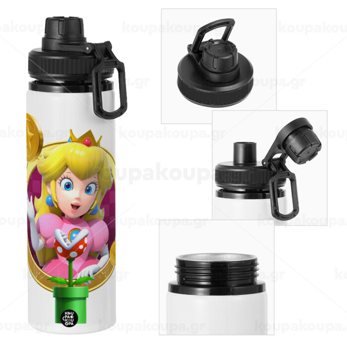 Princess Peach Toadstool, Metal water bottle with safety cap, aluminum 850ml