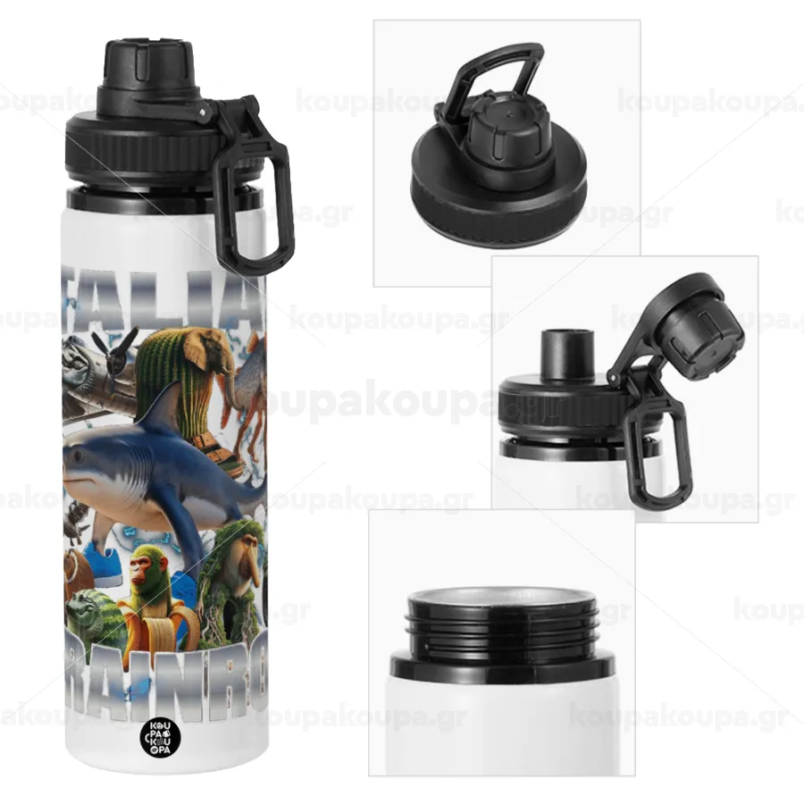 Italian Brainrot, Metal water bottle with safety cap, aluminum 850ml