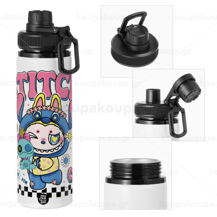 Labubu Stitch, Metal water bottle with safety cap, aluminum 850ml