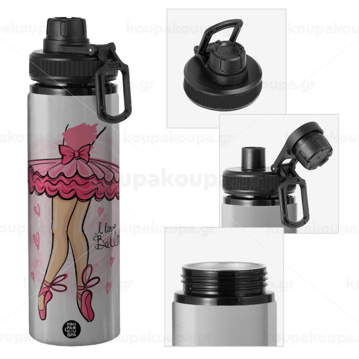 I Love Ballet, Metallic water bottle with safety cap, 850ml aluminum