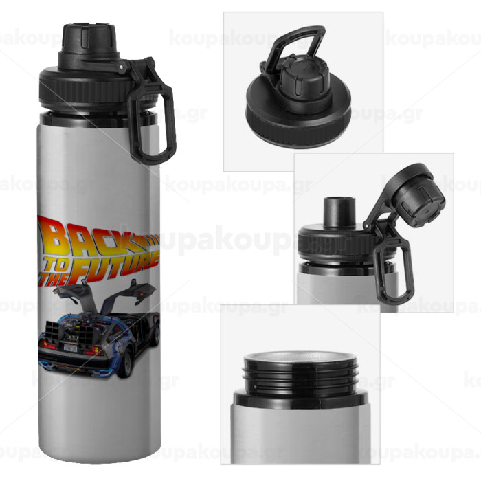 Back to the future, Metallic water bottle with safety cap, 850ml aluminum