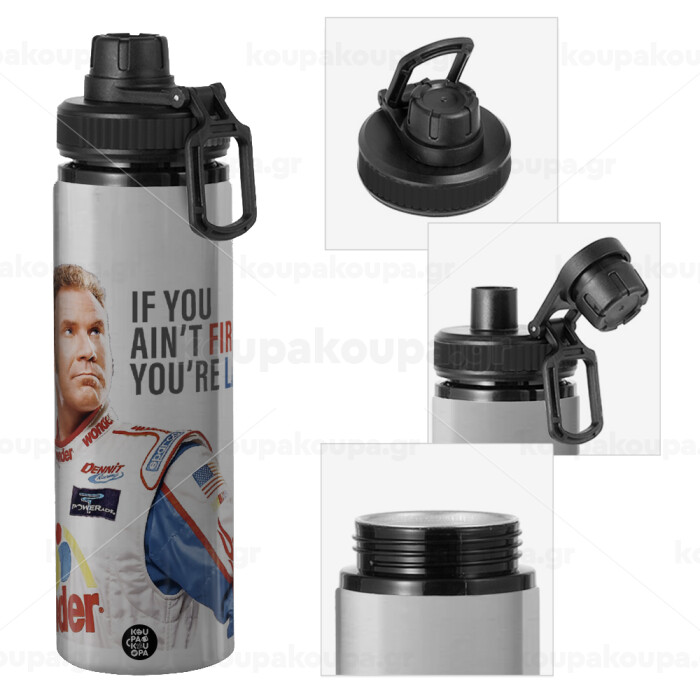 If You Ain't First You're Last Ricky Bobby, Talladega Nights, Metallic water bottle with safety cap, 850ml aluminum