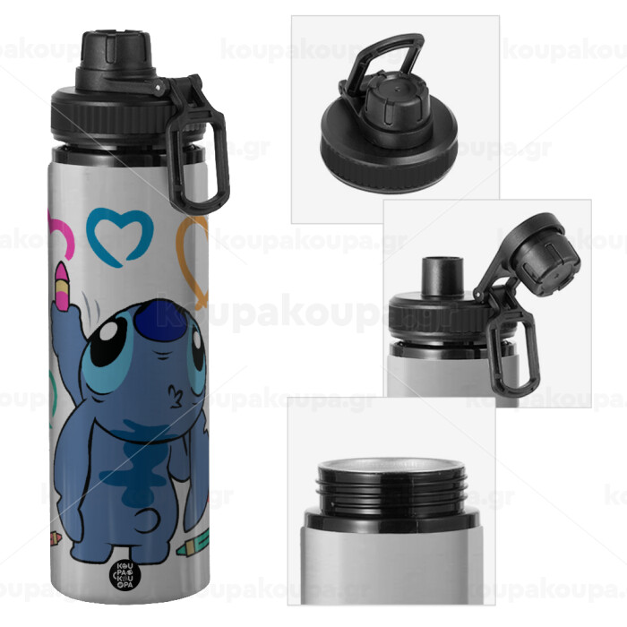Lilo & Stitch painting, Metallic water bottle with safety cap, 850ml aluminum