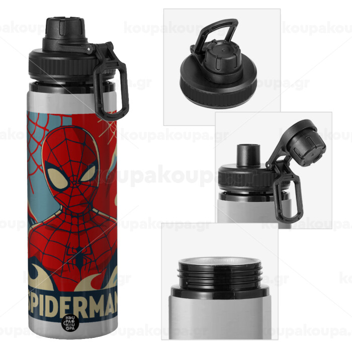 Spiderman kid, Metallic water bottle with safety cap, 850ml aluminum