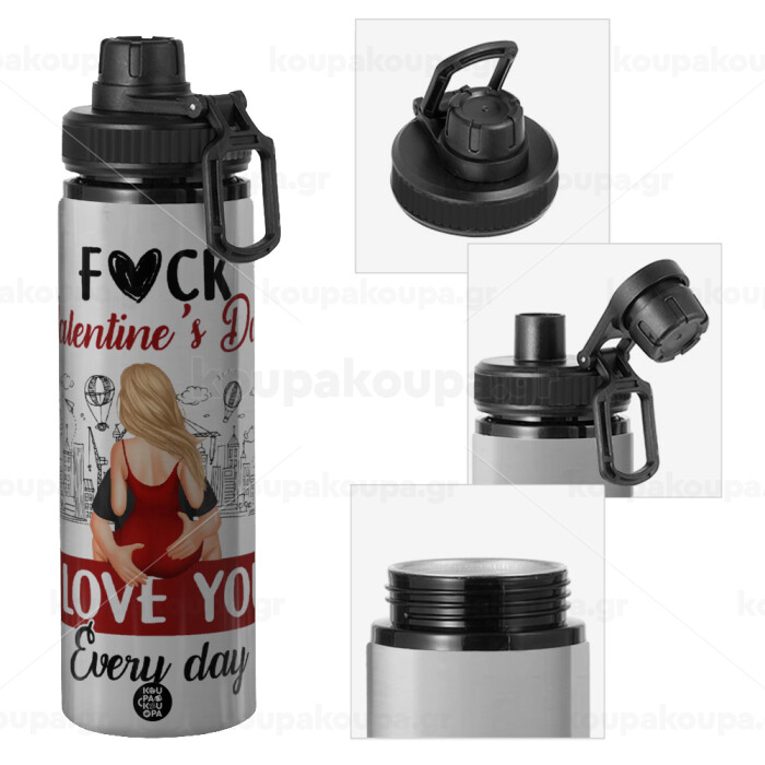 I love You Everyday , Metallic water bottle with safety cap, 850ml aluminum