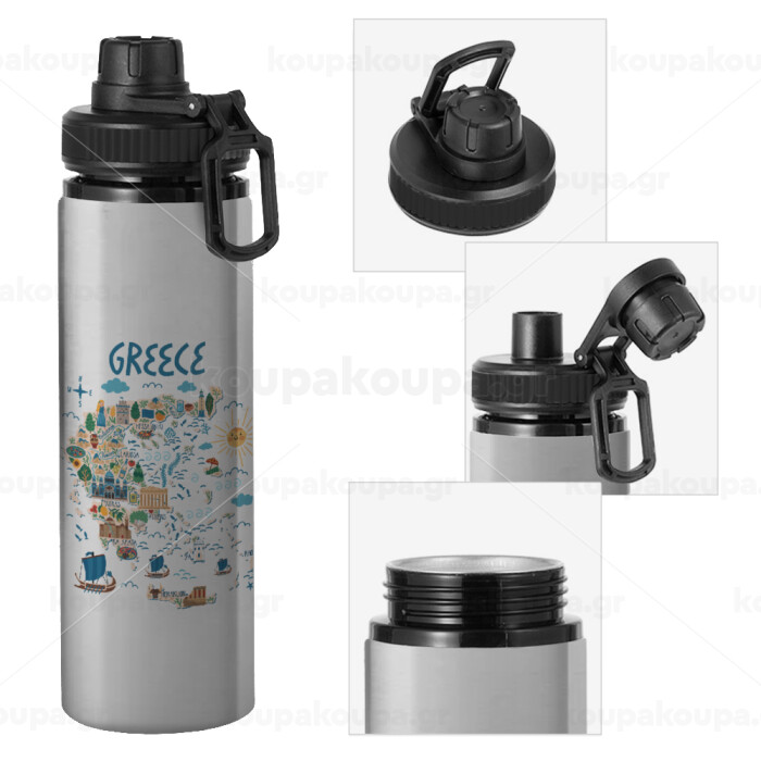Greek map, Metallic water bottle with safety cap, 850ml aluminum