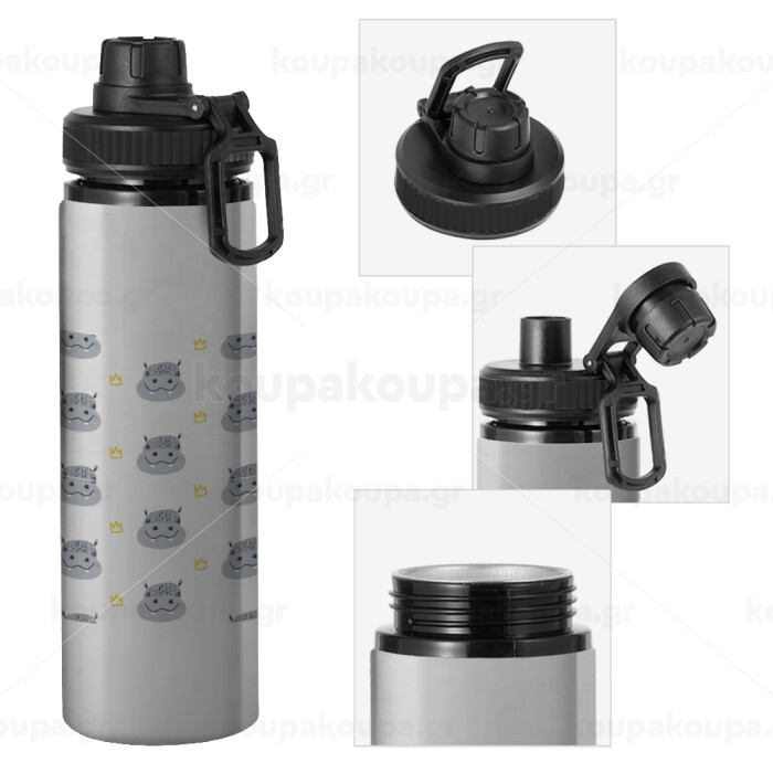 Hippo, Metallic water bottle with safety cap, 850ml aluminum