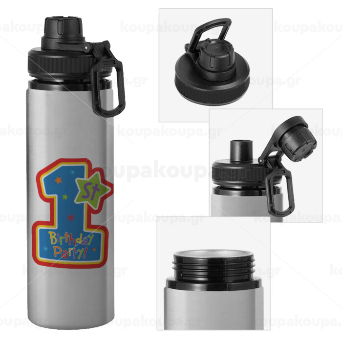 Happy 1st Birthday, Metallic water bottle with safety cap, 850ml aluminum