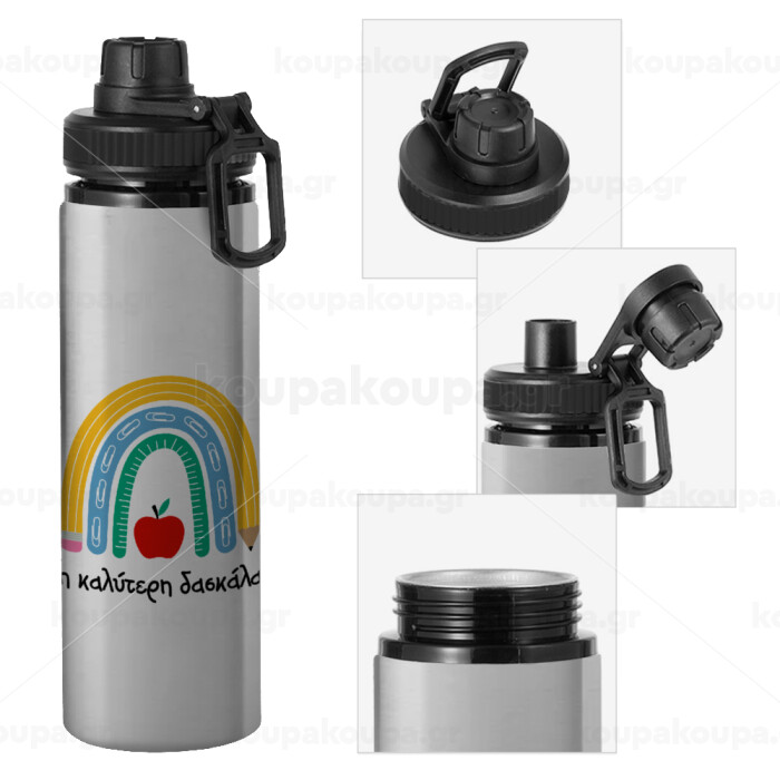 Η καλύτερη δασκάλα, Metallic water bottle with safety cap, 850ml aluminum