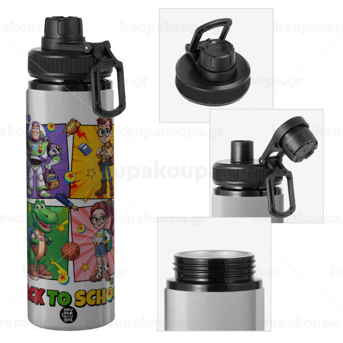 Back to the School Buzz & Friends, Metallic water bottle with safety cap, 850ml aluminum