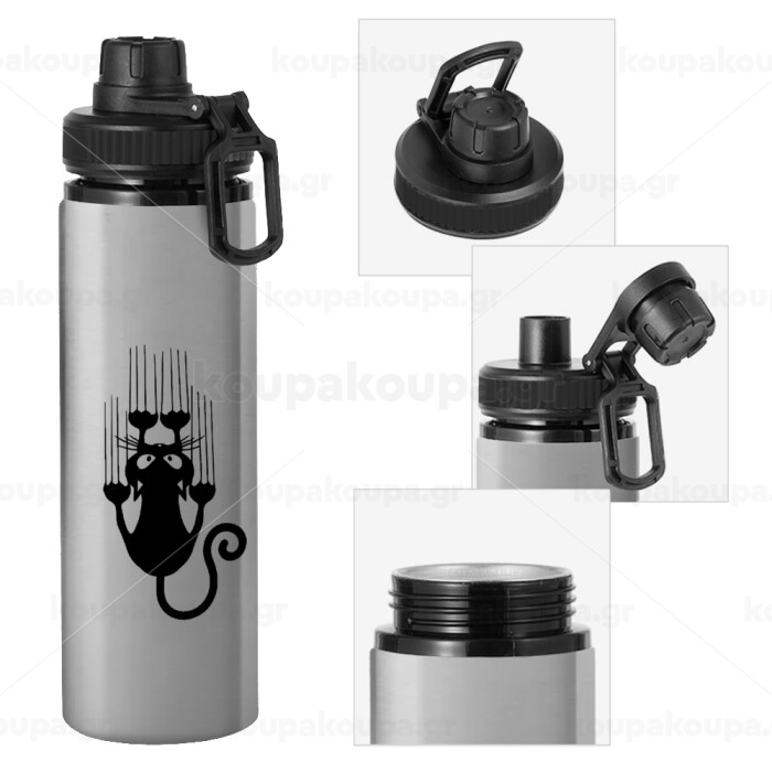 Cat scratching, Metallic water bottle with safety cap, 850ml aluminum